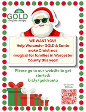 Help make the holiday brighter for a child in Worcester County! Each year, Worcester GOLD receives over 500 request for holiday assistance! These request come from our partner agencies on behalf of the families. You can help us by shopping for a child or making a donation for GOLD to shop on your behalf!